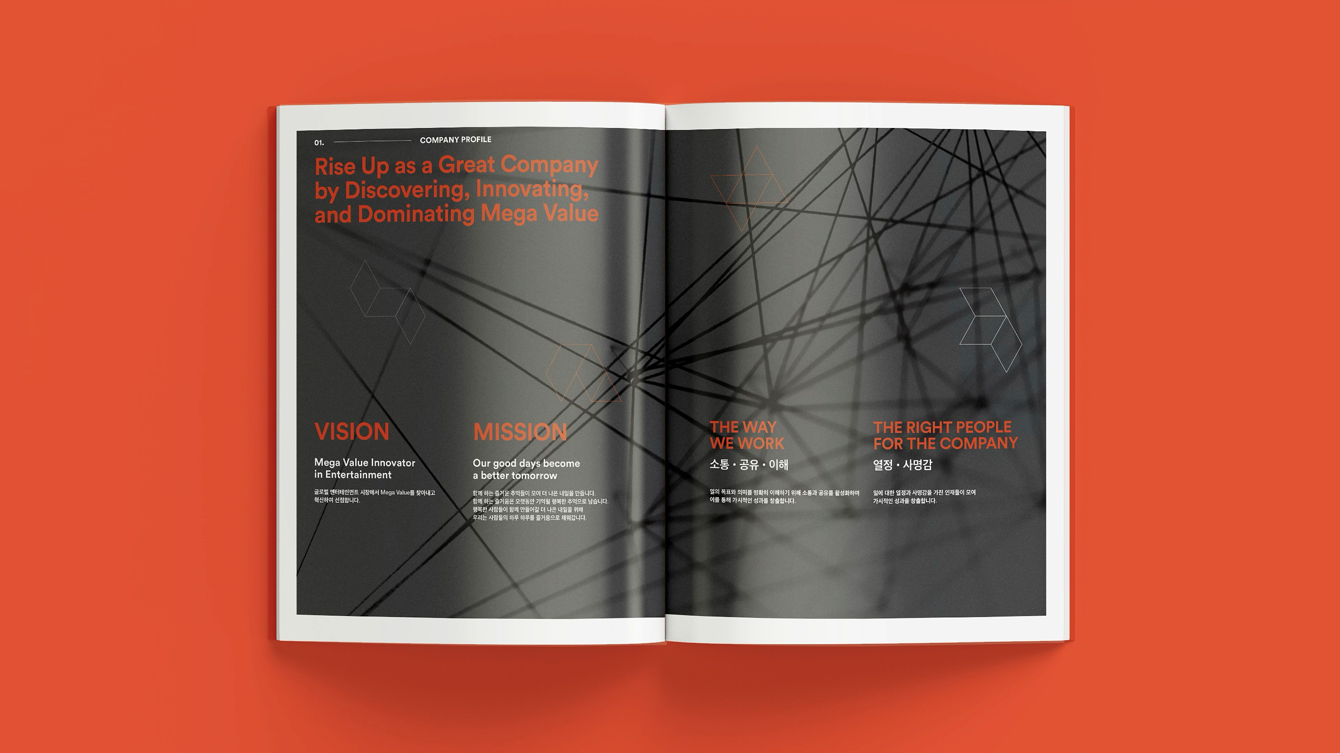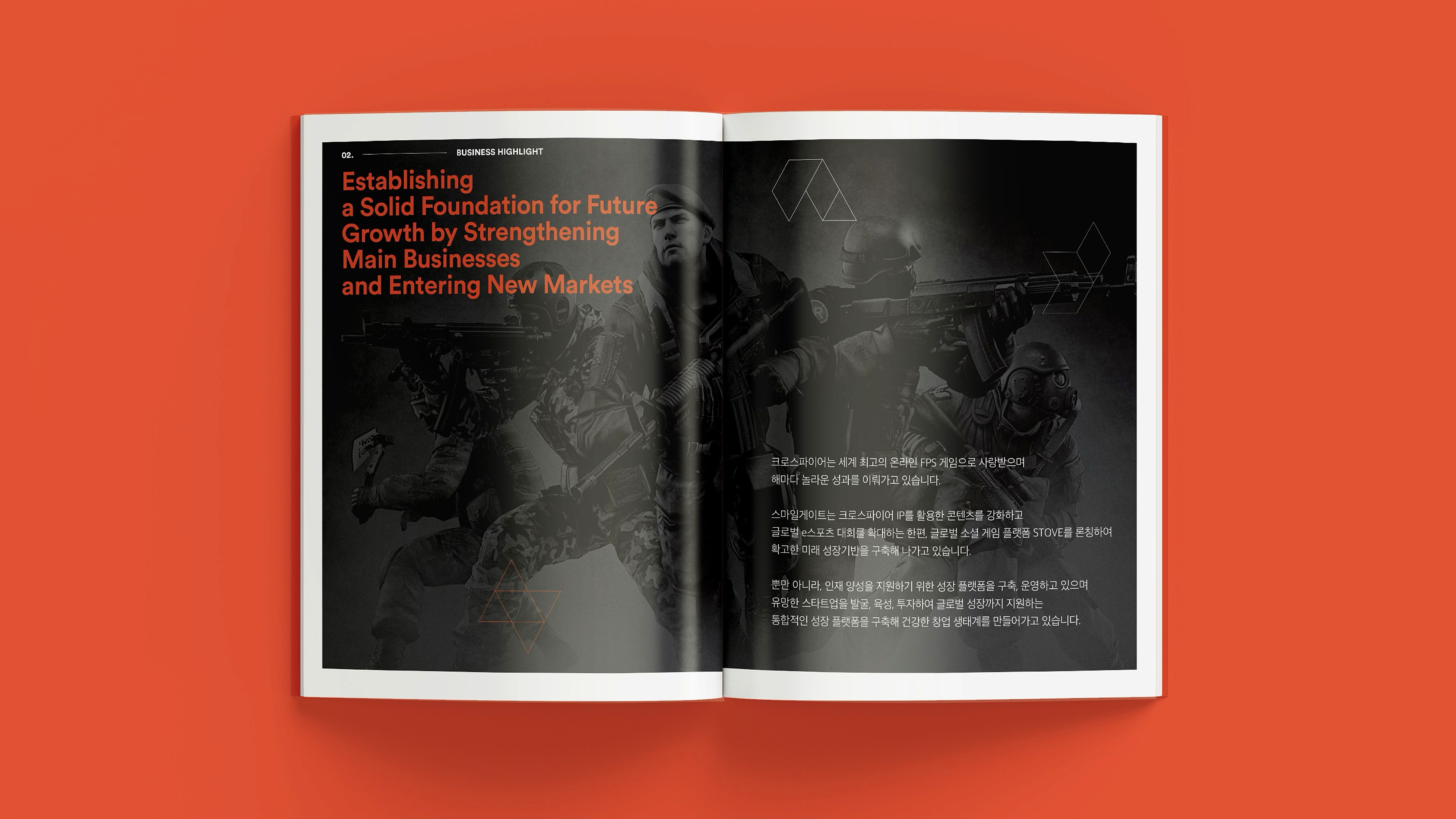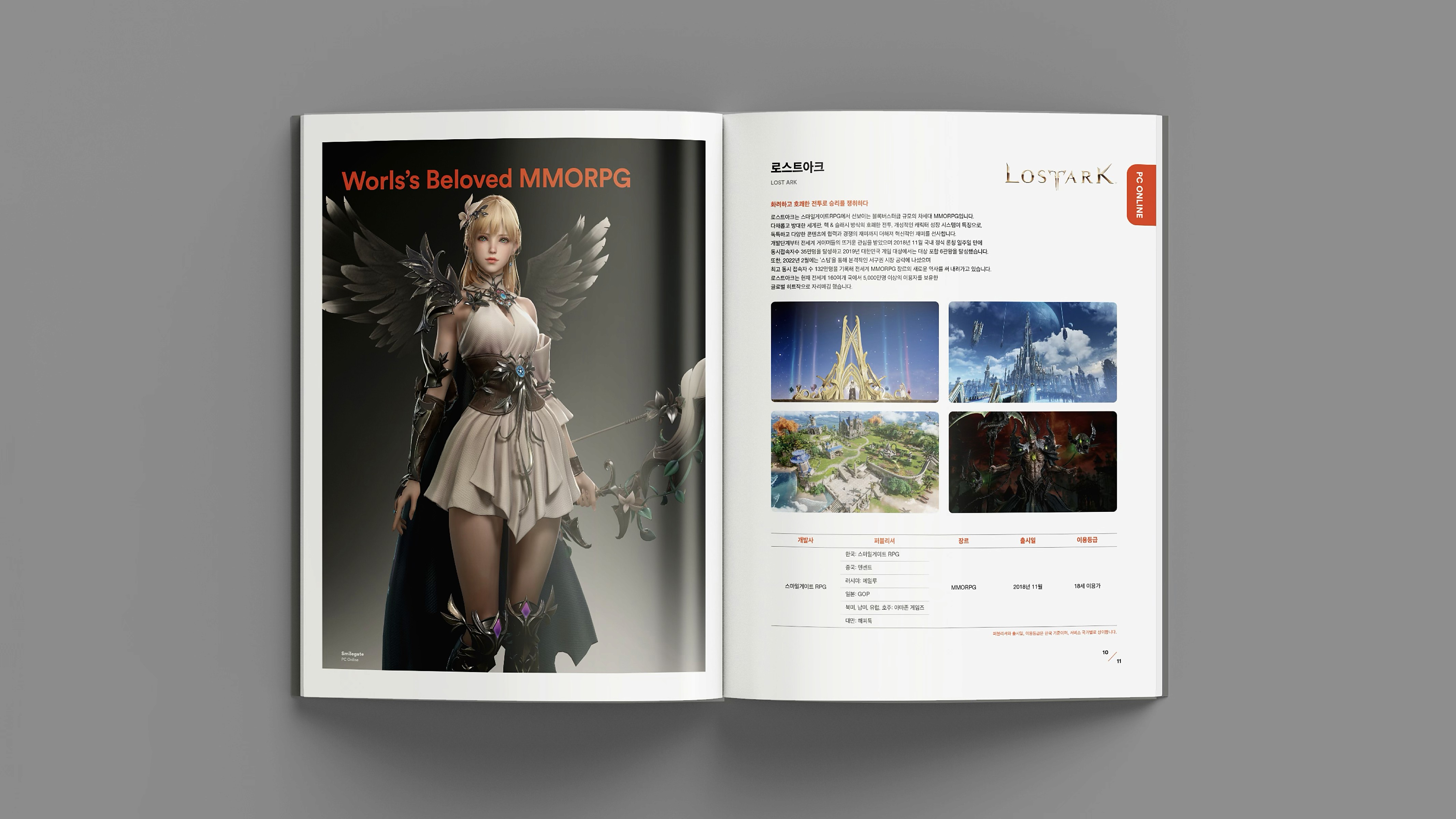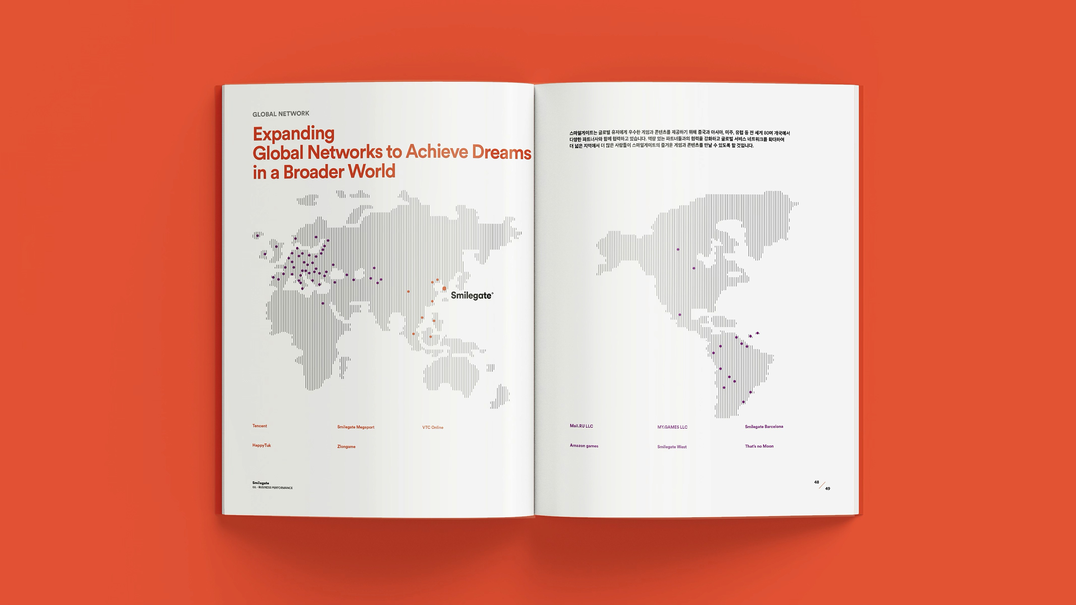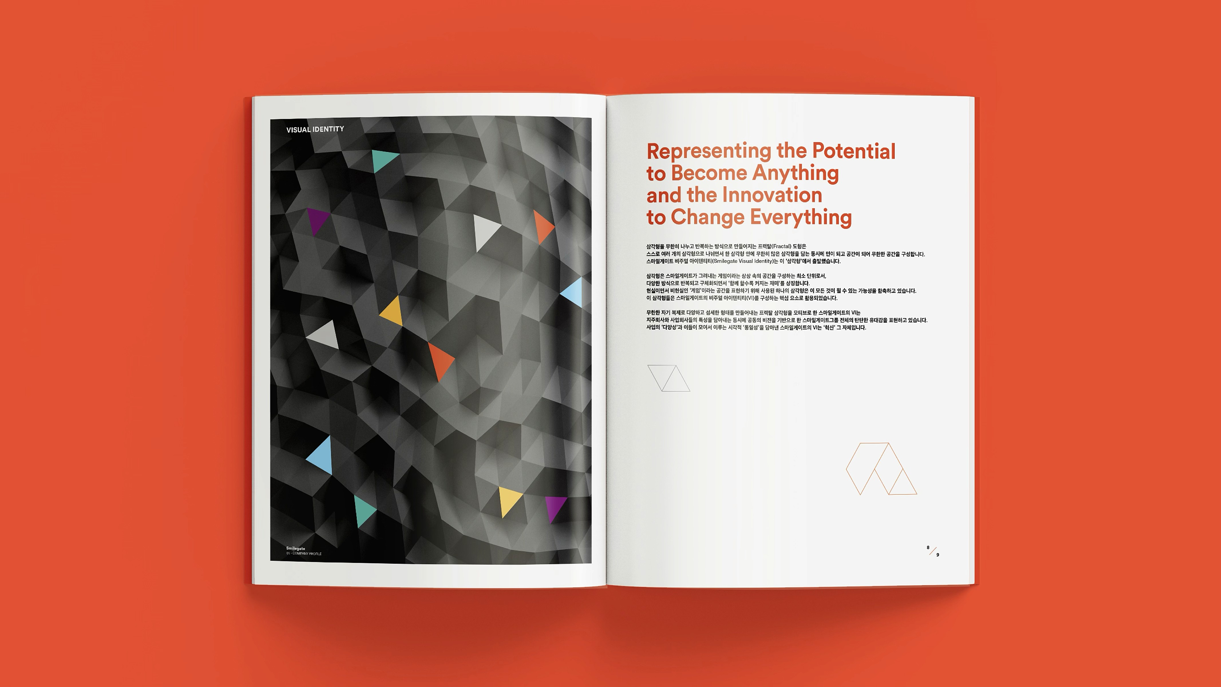 With a vision to become a globally beloved powerhouse of IP, Smilegate® delivers joyful gaming experiences, diverse entertainment content, and user-friendly services. This brochure showcases the core values, vision, and wide-ranging achievements Smilegate® has built across its business. From globally successful games to original IPs spanning various genres, our story is told through a branding approach that is both premium and engaging. 즐거운 게임, 다양한 엔터테인먼트 콘텐츠, 유저 친화적 서비스로 사랑받는 글로벌 IP 명가로 회사의 비전, 밸류 및 사업 전반에 걸쳐 스마일게이트®가 만들어 온 것들을 소개하며, 서비스하고 있는 게임 및 다양한 IP들을 담았습니다. 스마일게이트®의 브랜딩을 브로슈어에 충실히 반영하여 고급스럽고 재미있게 구성.